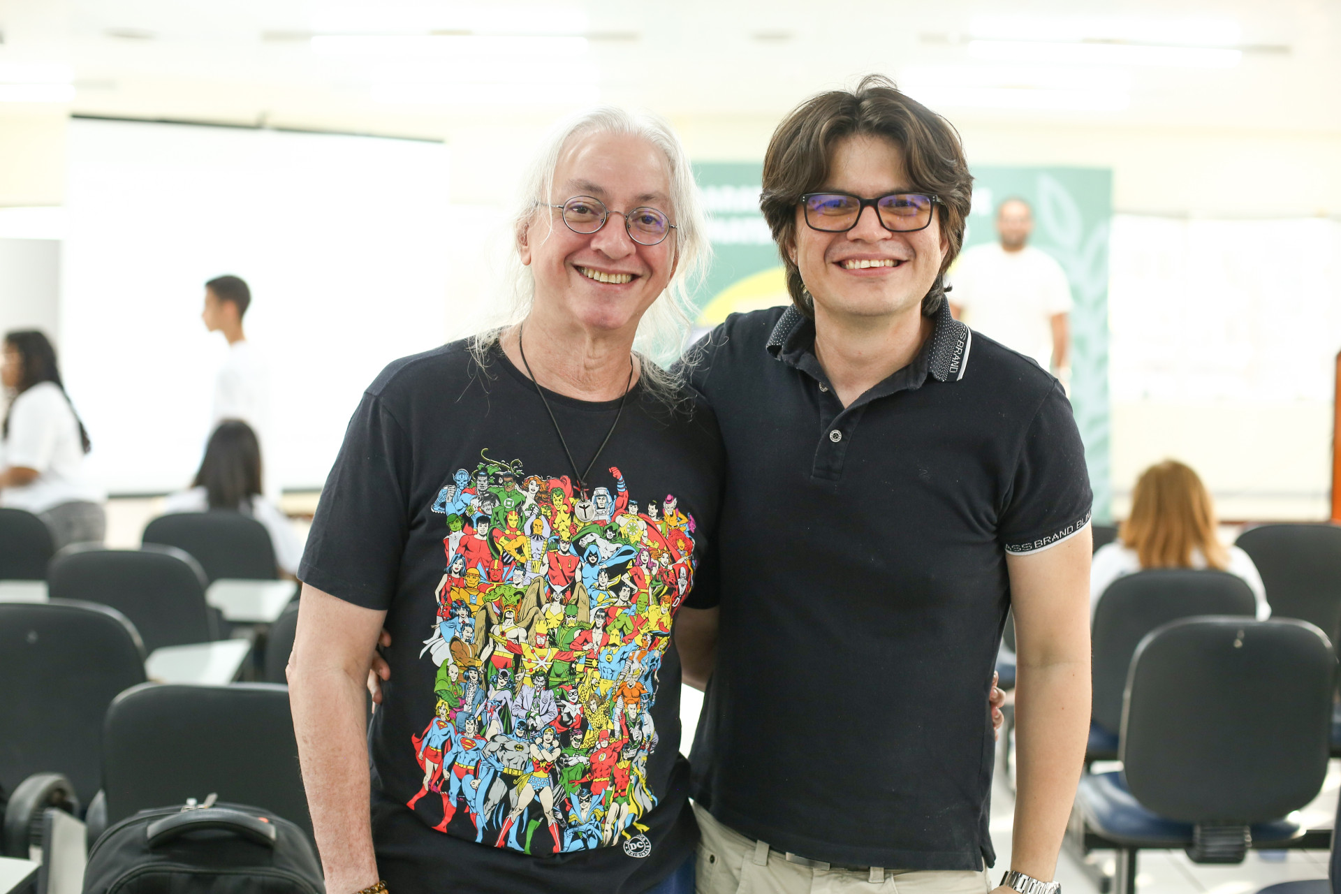 Raymundo Netto, gerente de criação de projetos da Fundação Demócrito Rocha e o professor Fábio Sampaio, diretor do Grupo de Estudos e Pesquisa em Matemática do Ceará Crédito: João Filho Tavares