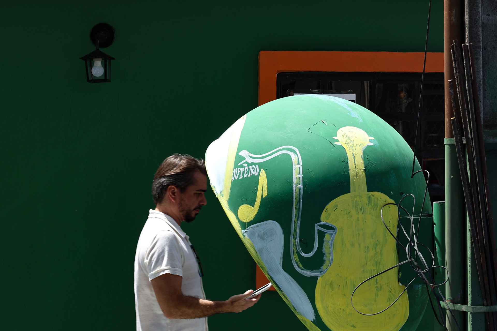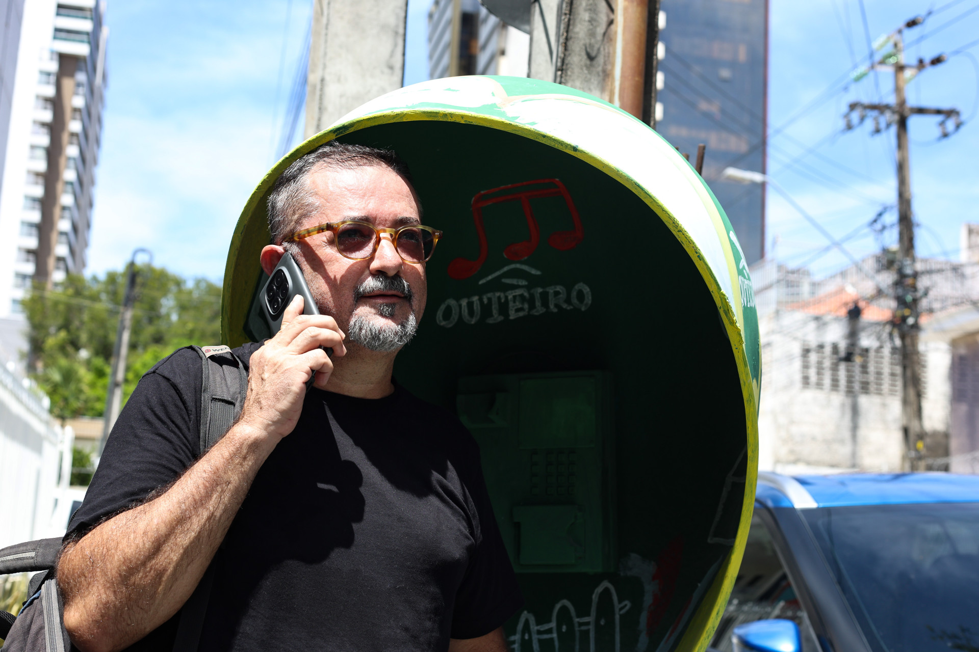 Próximo ao cruzamento das ruas Monsenhor Bruno e Torres Câmara, no bairro Aldeota, em Fortaleza, um velho orelhão ganhou recentemente uma nova aparência. Apesar de já não contar mais com o telefone de fio, ganhou uma pintura verde, com desenhos em amarelo e branco que remetem a instrumentos musicais.