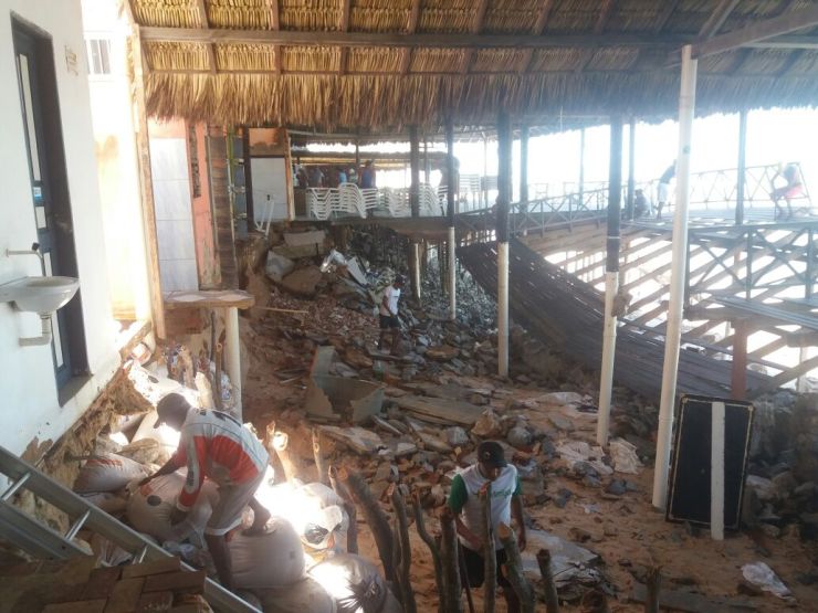 A ressaca do mar atingiu até 3.2 metros no litoral cearense, no último domingo, 16, causando estragos na orla da Praia do Morro Branco, em Bereribe, distante 85 km de Fortaleza. Ninguém ficou ferido, mas os danos materiais ainda estão sendo calculados por proprietários de barracas, segundo a Defesa Civil do município.