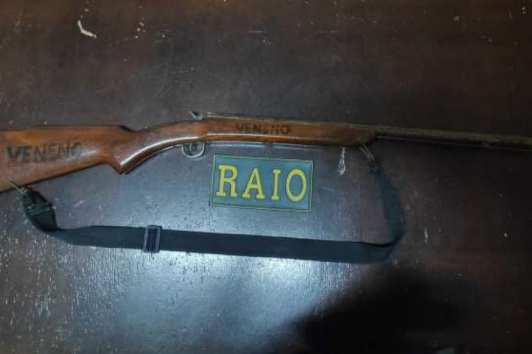 Os policiais tentaram capturar o homem, que pulou uma cerca e deixou a espingarda para trás. Mesmo com diligências pela área, ele não foi encontrado. A arma de fogo, que contém a palavra "veneno" em várias partes, foi apresentada na delegacia local e um Boletim de Ocorrência (BO) foi feito.