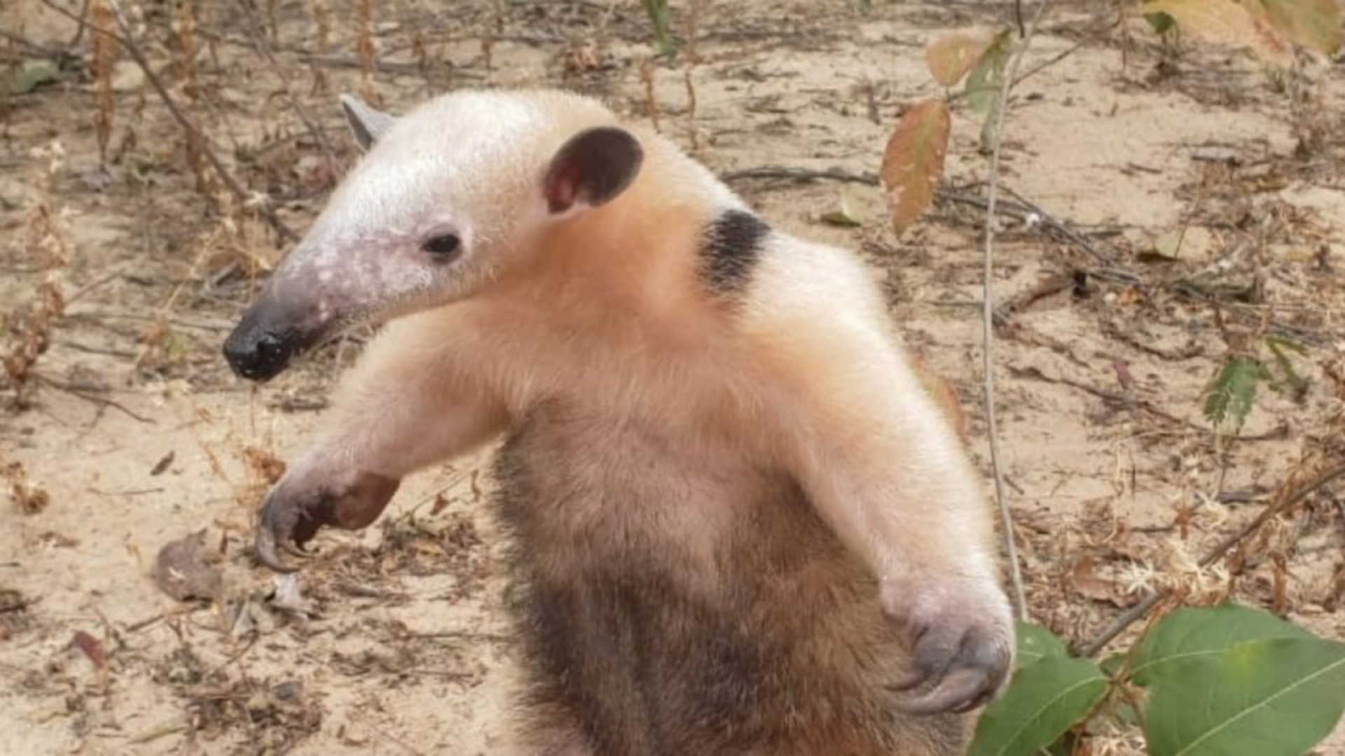 Um tamanduá-mirim foi resgatado, nessa segunda-feira, 26, pelo Corpo de Bombeiros Militar do Estado do Ceará (CBMCE), no município de Crateús.