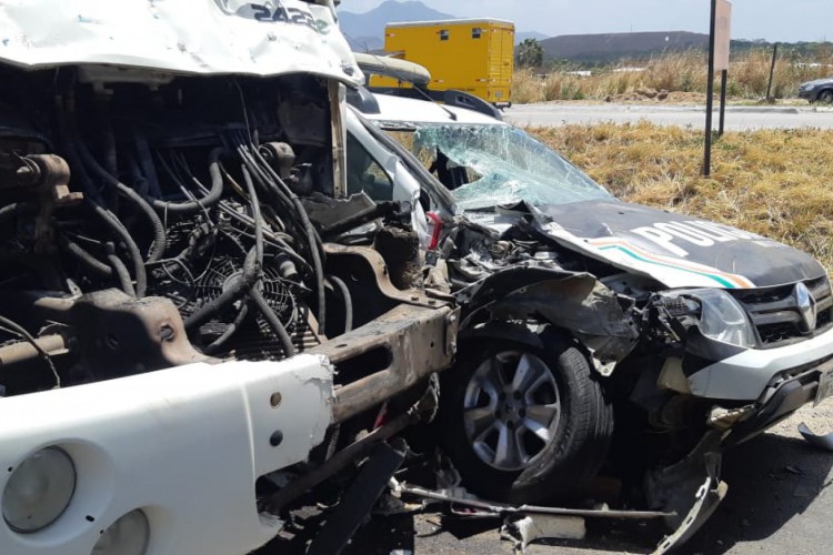 Um acidente registrado no fim da manhã desta terça-feira, 13, deixou um policial militar e um caminhoneiro levemente feridos na BR-020, quilômetro 407, em Caucaia, na Região Metropolitana de Fortaleza (RMF).