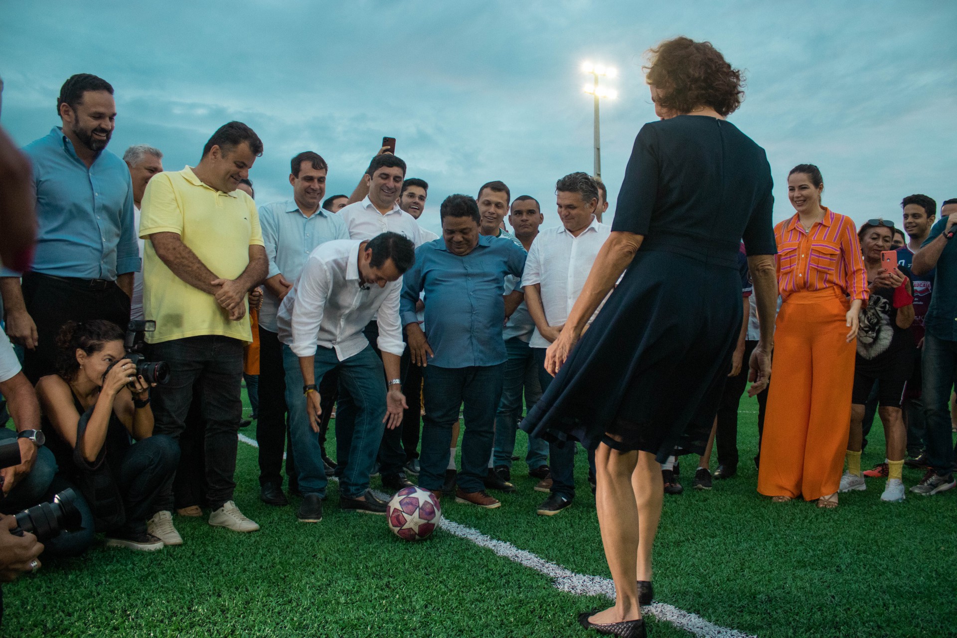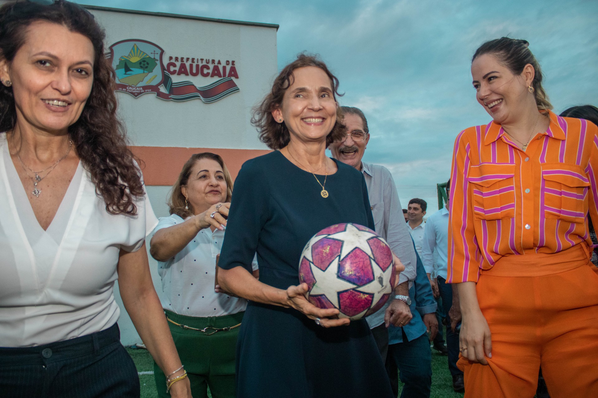 Depois de assinar a ordem de serviço do novo sistema de abastecimento, Izolda Cela participou da inauguração da Areninha do bairro Planalto, também em Caucaia. Com investimento de R$ 1,8 milhão, a estrutura conta com campo society com grama sintética, alambrados, redes, vestiários, banheiros, acessos pavimentados e torres de iluminação.