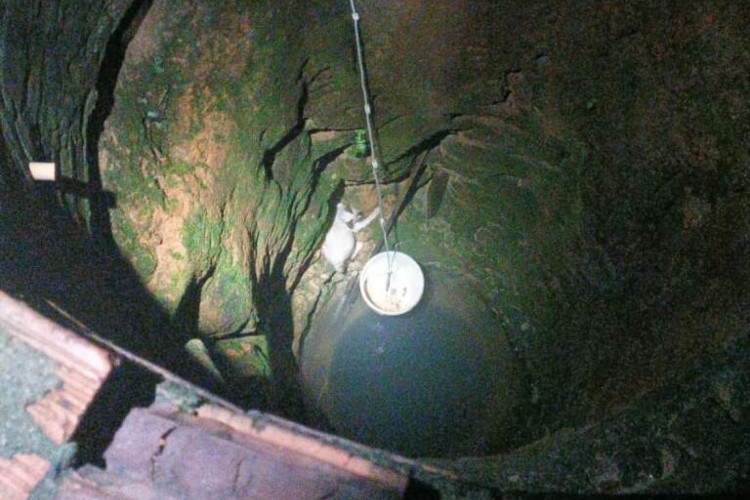 Gato é resgatado após cair em cacimba de oito metros em Caucaia