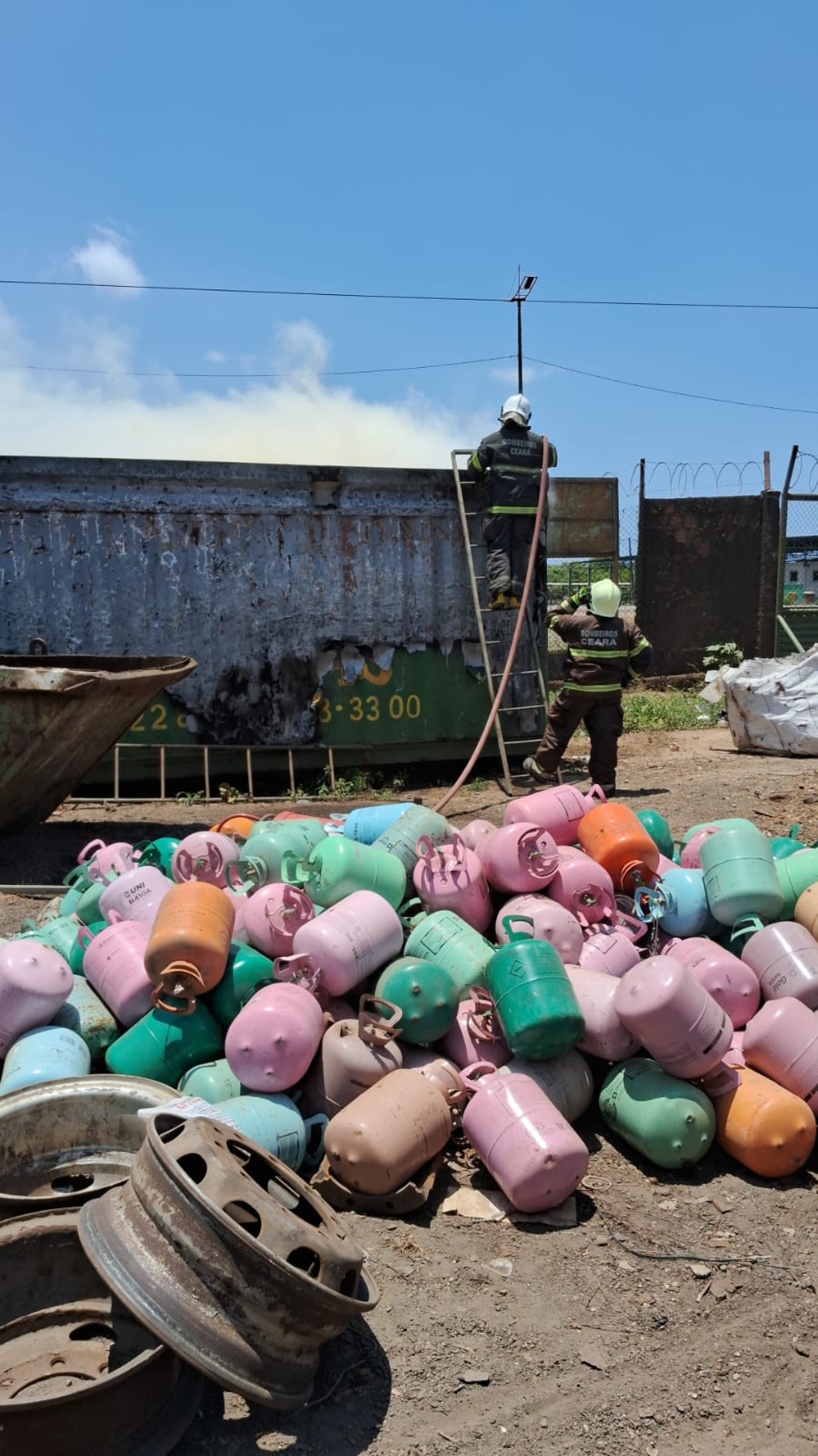 Ainda de acordo com apuração do O POVO, o fogo atingiu três containers com matérias recicláveis e peças de carros. O incêndio se alastrou no terreno e chegou a atingir a parede de uma casa vizinha. O Corpo de Bombeiros utilizou oito mil litros de água para apagar todos os focos.