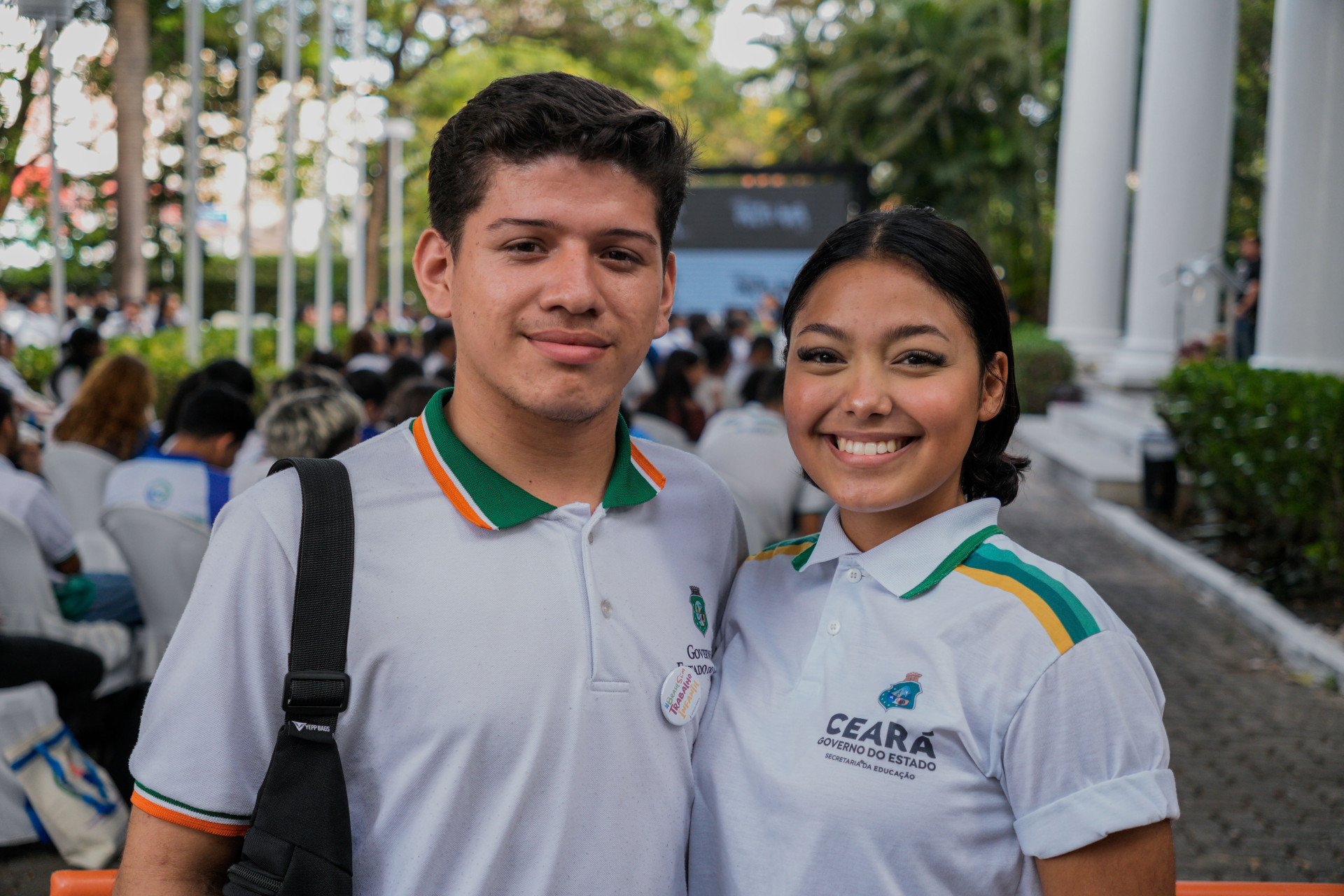 FORTALEZA, CEARÁ, BRASIL, 05-12-2025: O Tribunal de Justiça do Trabalho realizou o encerramento do projeto "Partiu Aula", com palestras e batalhas de rima para crianças e adolescentes. Na foto, Ana Sophia e Mateus da Silva. (Foto: Fernanda Barros/ O Povo) Crédito: FERNANDA BARROS