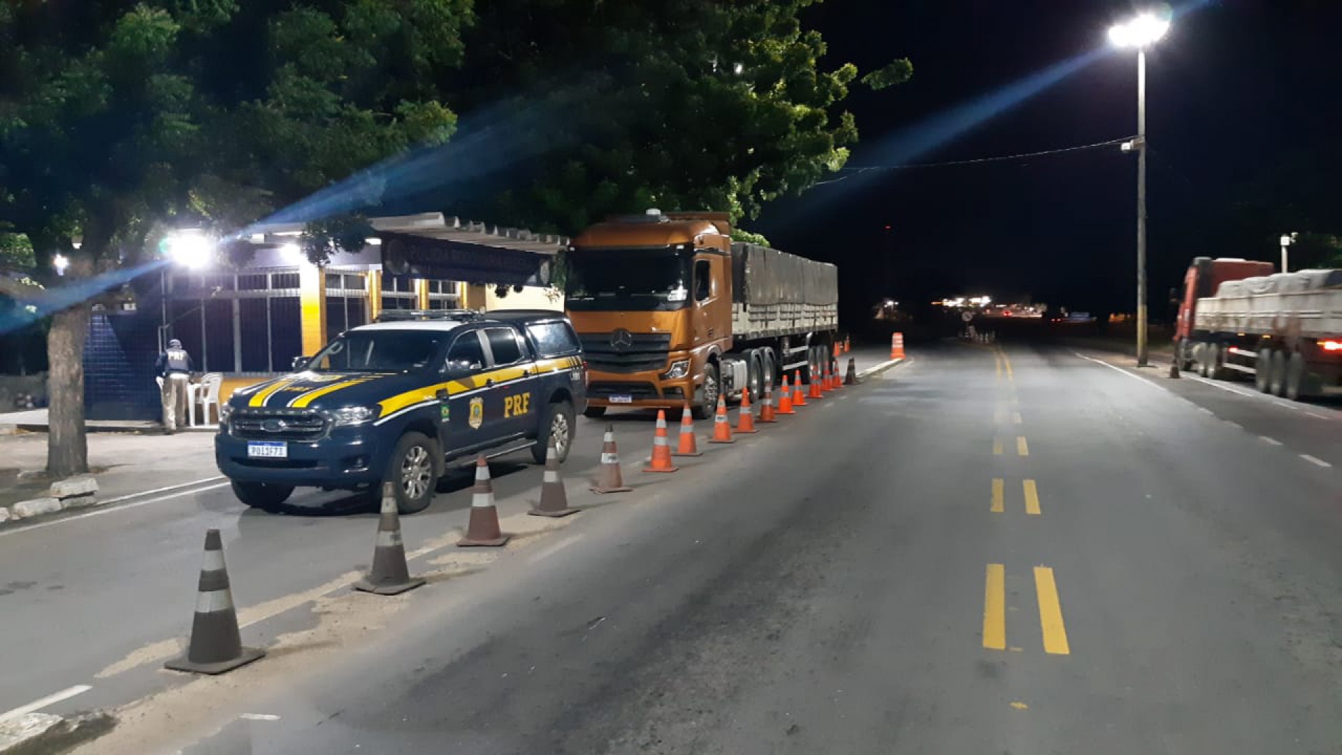 A abordagem ocorreu por volta das 19h30min na BR 116, quilômetro (km) 71. O veículo do modelo Actros, da marca Mercedez-Benz, era conduzido por um homem.