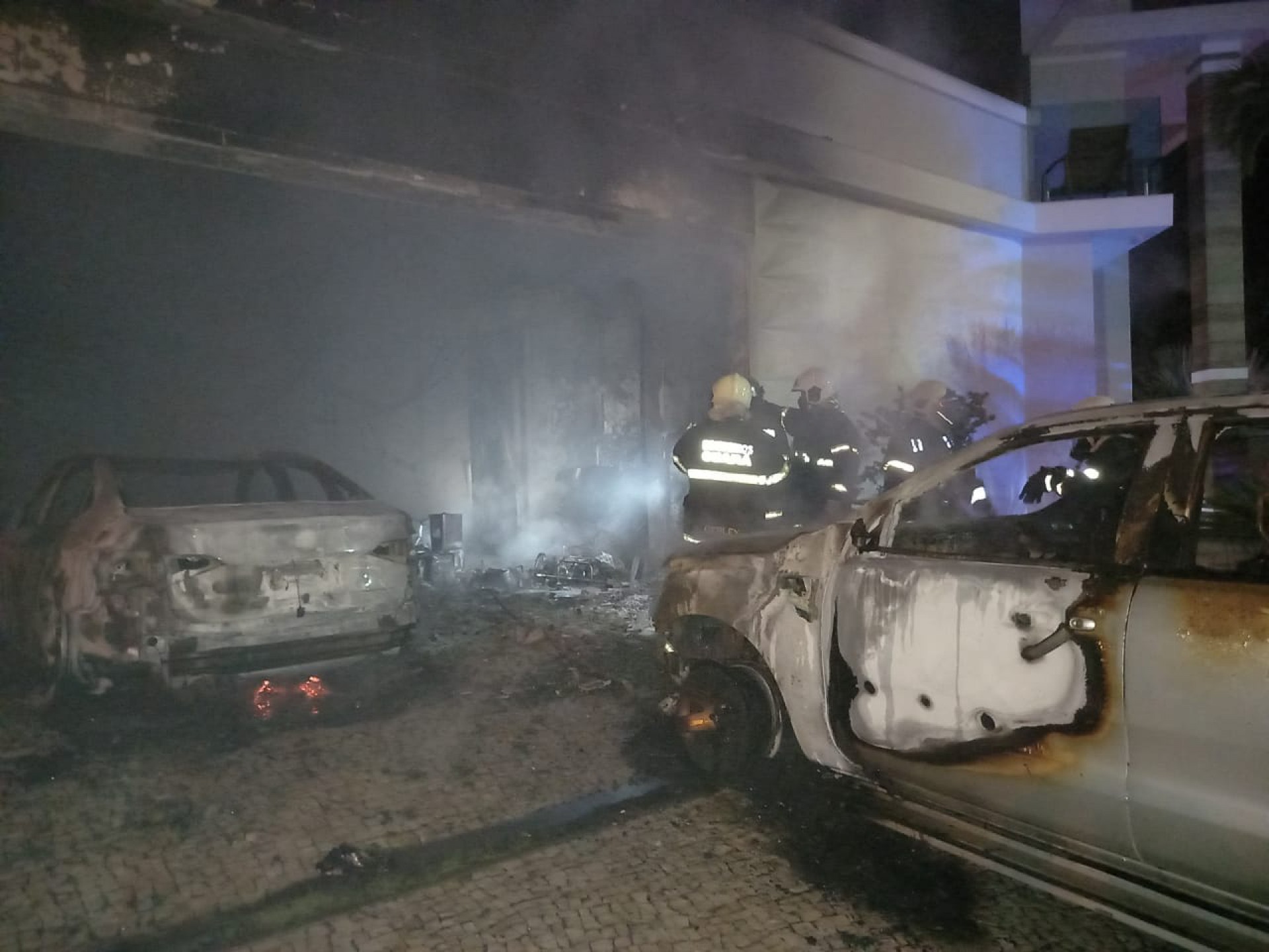 Segundo o Corpo de Bombeiros, os carros de alto valor tiveram perda total. O fogo consumiu a garagem, paredes, teto, fiação, estrutura hidráulica e materiais de construção.