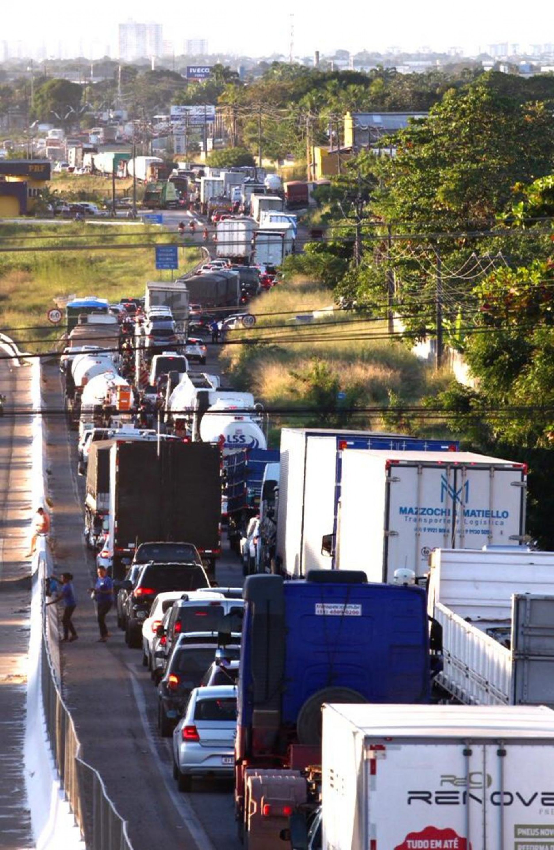 Um caminhão tombou na BR-116, no município de Eusébio, Região Metropolitana de Fortaleza (RMR), e deixou o motorista do veículo ferido. O acidente, que aconteceu na tarde desta segunda-feira, 2, resultou em uma interdição parcial da via por cerca de seis horas, entre 13h45min e 18h55min. Carros chegaram a passar duas horas parados nas proximidades do local do acidente.