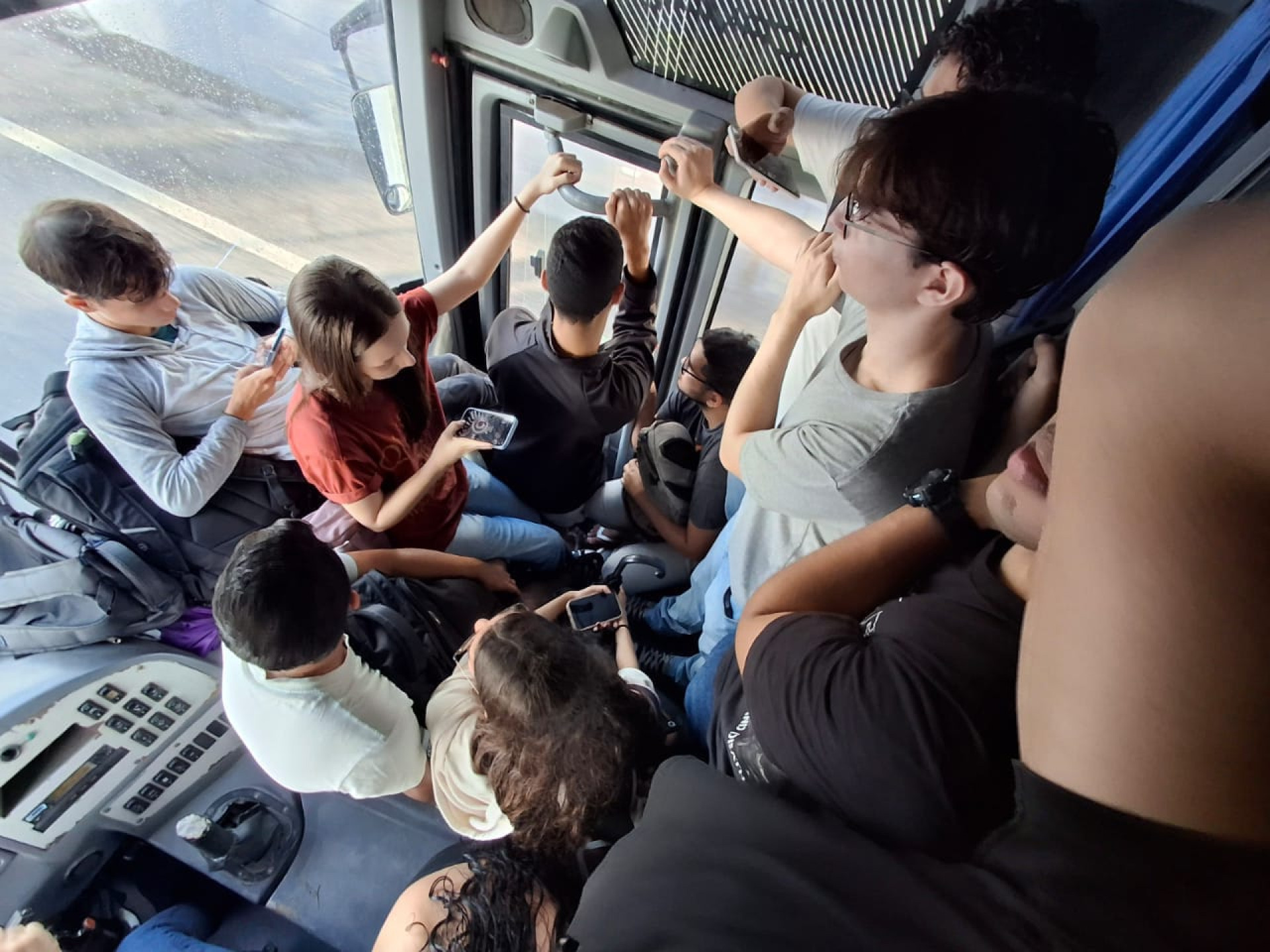 Na terça-feira, 1º, um vídeo que circulava em grupos de WhatsApp relacionados ao transporte exibiam os estudantes amontoados. As imagens mostravam ainda que, para que parte dos estudantes consiga sair do veículo, diversas pessoas que estão na frente precisam descer para que o desembarque aconteça.