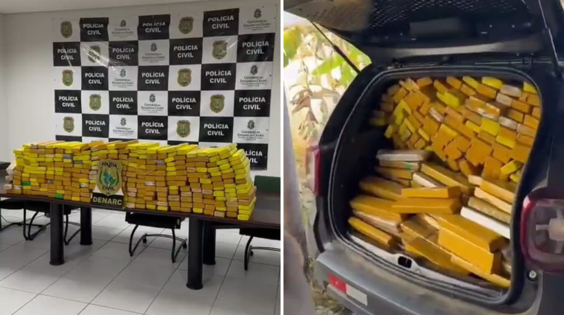 Em Horizonte, a 43,45 quilômetros (km) de Fortaleza, foram apreendidos 276,8 quilos (kg) de maconha, que estavam divididos em 296 tabletes, na tarde desta quinta-feira, 26. Os entorpecentes estavam em um imóvel abandonado no distrito de Dourados, que pertencia a um grupo criminoso carioca com atuação em todo o Brasil. Os materiais seriam distribuídos em Fortaleza e na Região Metropolitana.