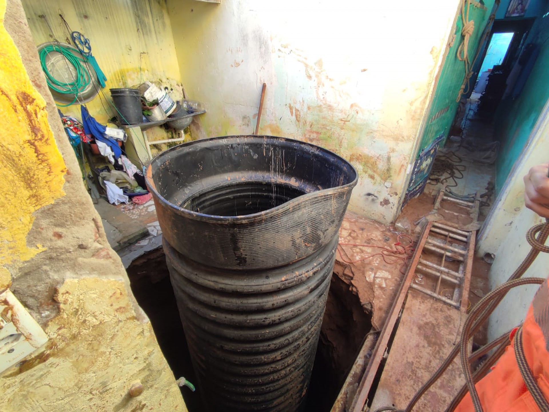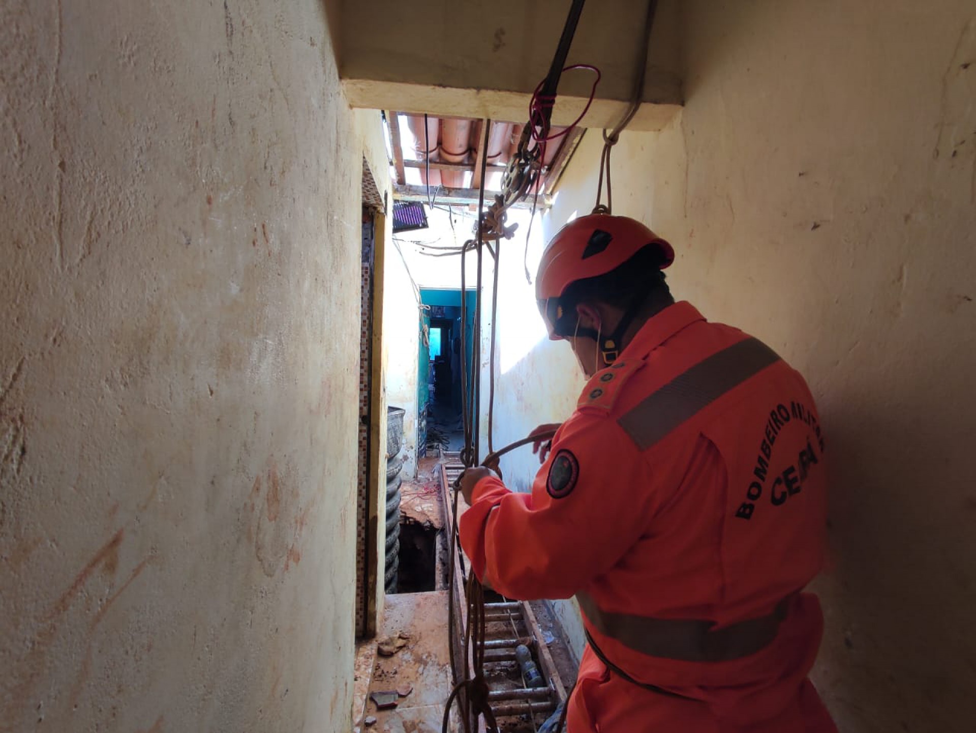 Medida era necessária para a retirada de objetos que atrapalhavam o resgate, como água e lama. No sábado, a Companhia de Água e Esgoto do Ceará (Cagece) chegou a ser chamada ao local para ajudar no resgate.