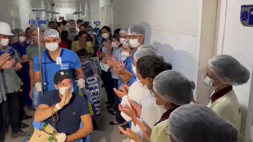 Regilânio saiu sob aplausos do Hospital Santo Antônio, em Barbalha, onde estava internado desde a sexta-feira, 4, quando aconteceu o acidente.