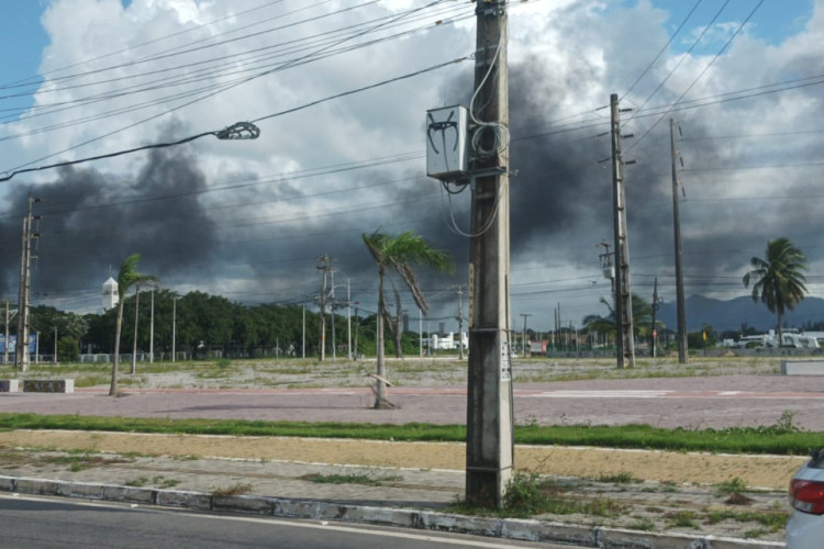 O incêndio iniciou por volta das 10 horas da manhã e está sendo combatido pelo Corpo de Bombeiros do Ceará