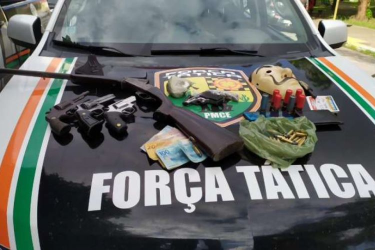 Em operação de combate às organizações criminosas, a Polícia Militar do Ceará (PMCE) prendeu três pessoas e apreendeu cinco armas de fogo nessa sexta-feira, 29, em Maranguape. A ação ocorreu em um imóvel, cuja localização foi determinada após denúncia à PM.