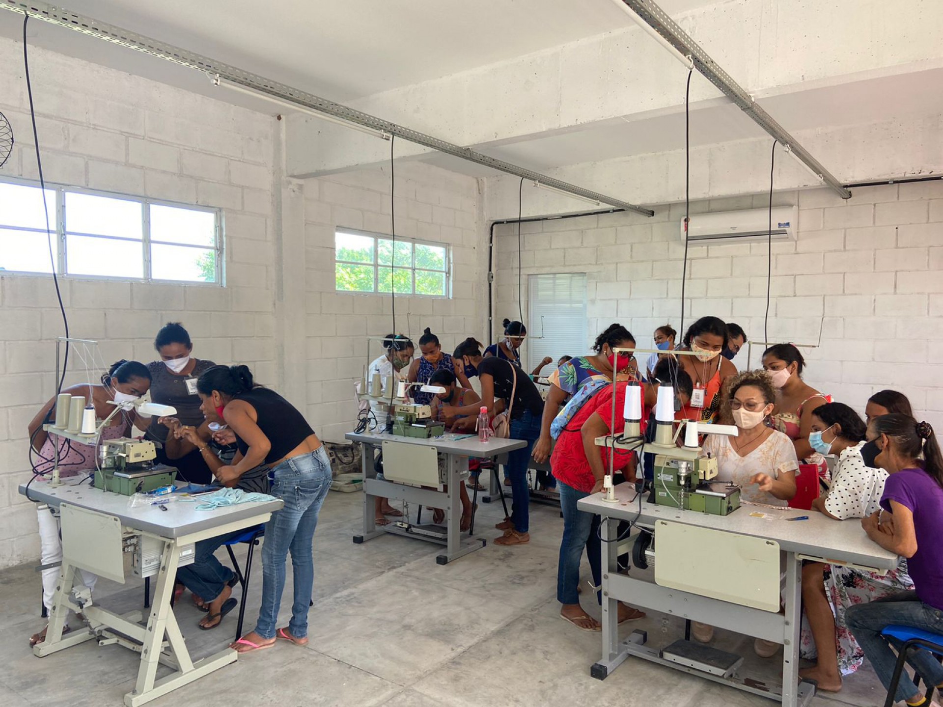 Vitória Régia Lima da Silva e Gleiciane Sousa Lima são duas das 20 mulheres que participam do projeto. No período das aulas, elas têm acesso a seis máquinas de costura e retalhos, bem como são direcionadas ao aprendizado de técnicas de costura, moda com o uso dos tecidos e a identificar oportunidades e práticas empreendedoras. Além disso, contam com transporte gratuito e recebem cestas básicas.
