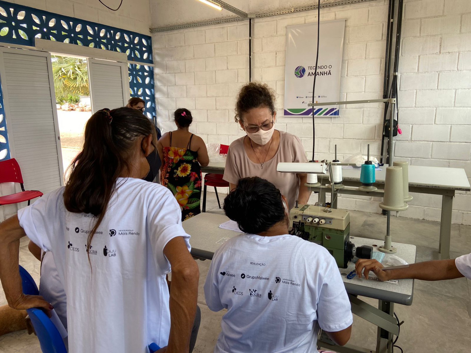 Moradoras da cidade de Horizonte, em Pacajus, Região Metropolitana de Fortaleza (RMF), são incentivadas a empreender em suas próprias confecções por meio do "Tecendo o Amanhã", iniciativa que faz parte do projeto "Menos Resíduos, Mais Renda", promovido pelo Instituto Malwee. A instituição fornece máquinas de costura e retalhos e, em parceria com o Centro Integrado de Estudos e Programas de Desenvolvimento Sustentável (Cieds), capacita mulheres que atuam como catadoras no lixão da cidade.