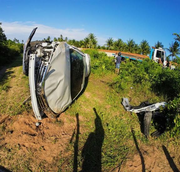 Carro capota na CE-341, a 7 km de Paracuru