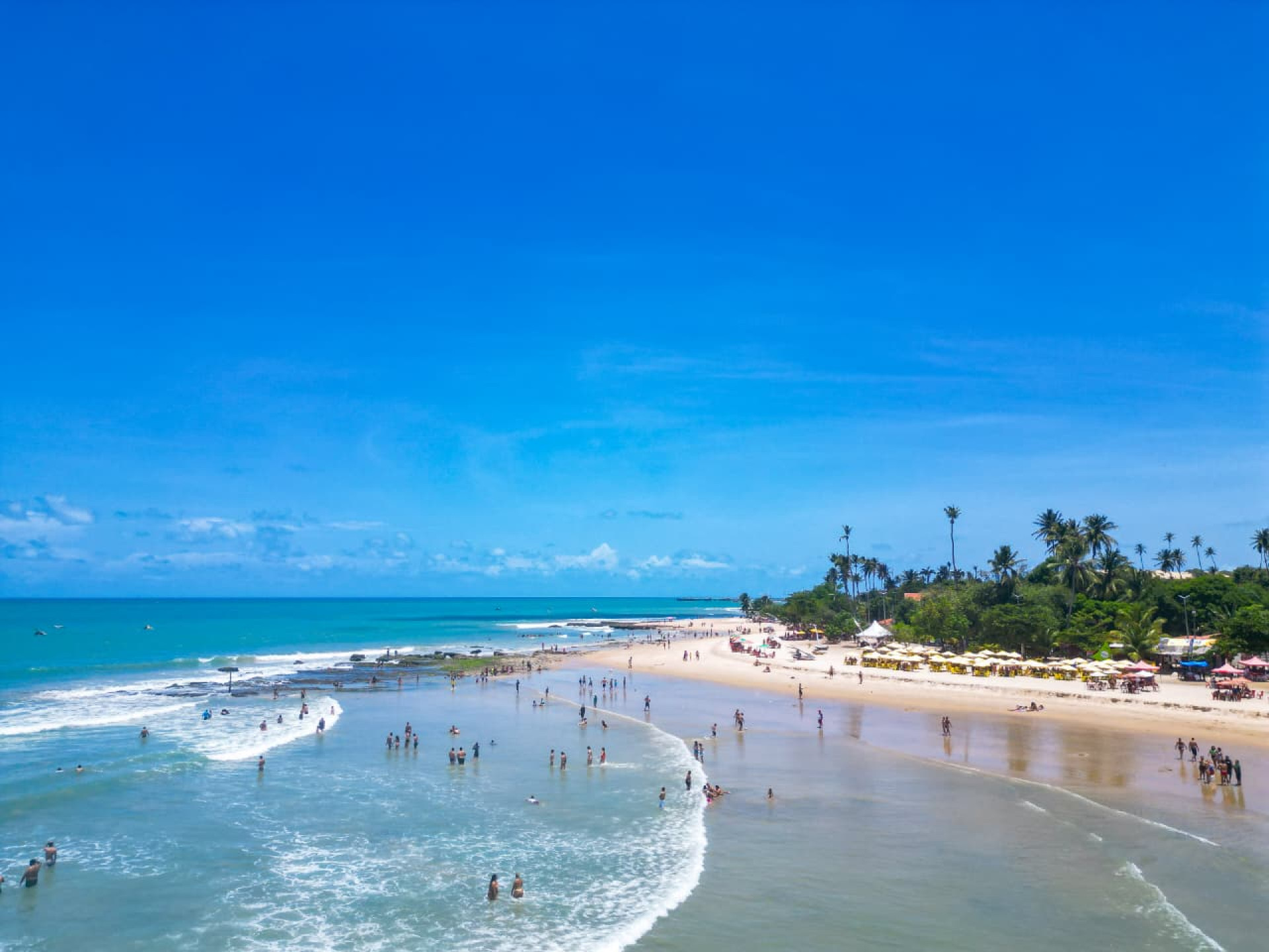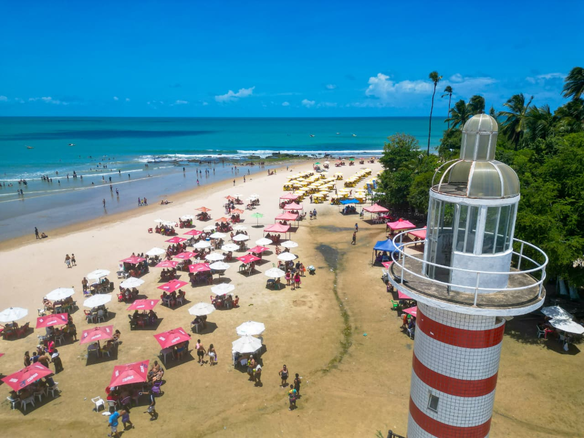 Por hora, as imagens áreas comprovam que a circulação encontra-se tímida e familiar, com pessoas indo ao encontro do mar e pleno funcionamento das barracas de praia.