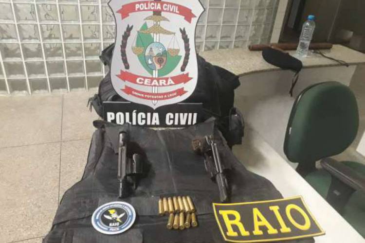 Foram apreendidos dois revólveres calibre 38, 12 munições e um colete balístico