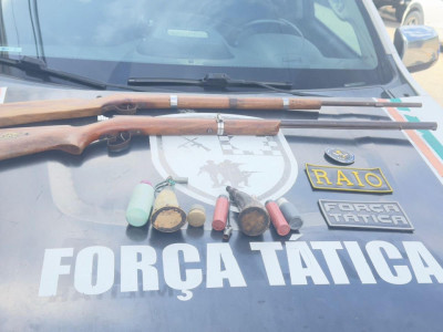 Na ação foram apreendidas duas espingardas tipo socadeira e dois recipientes de pólvora.