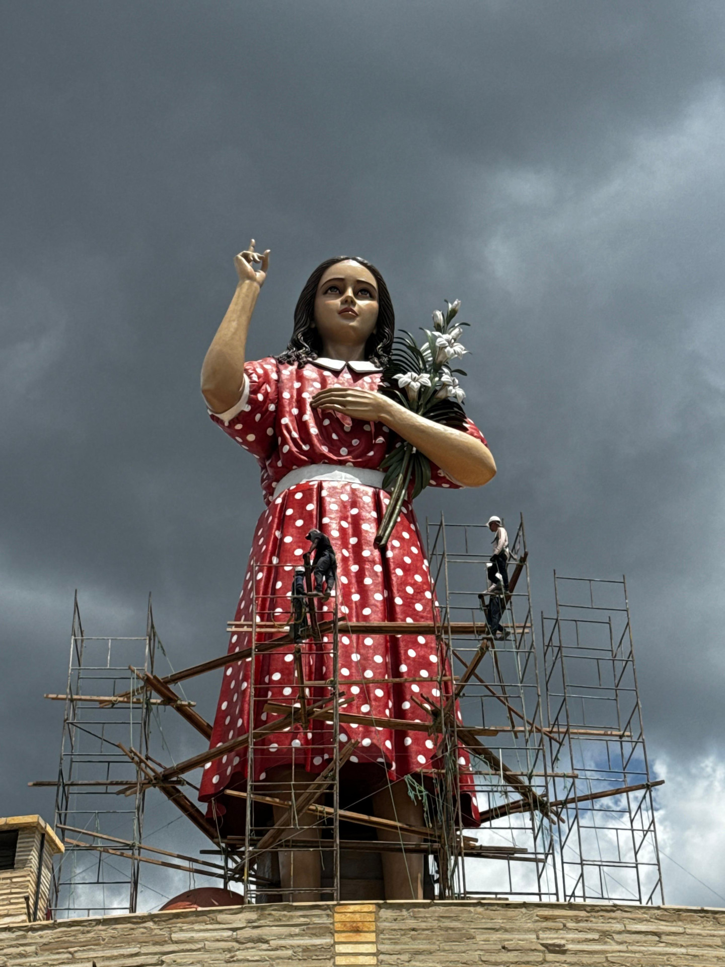 Em setembro, o monumento começou a ser refeito devido à falta de semelhança com a beata. O incômodo em relação à escultura religiosa veio principalmente da Diocese e dos romeiros, disse Ypsilon Félix à rádio O POVO CBN Cariri, no mês de outubro.