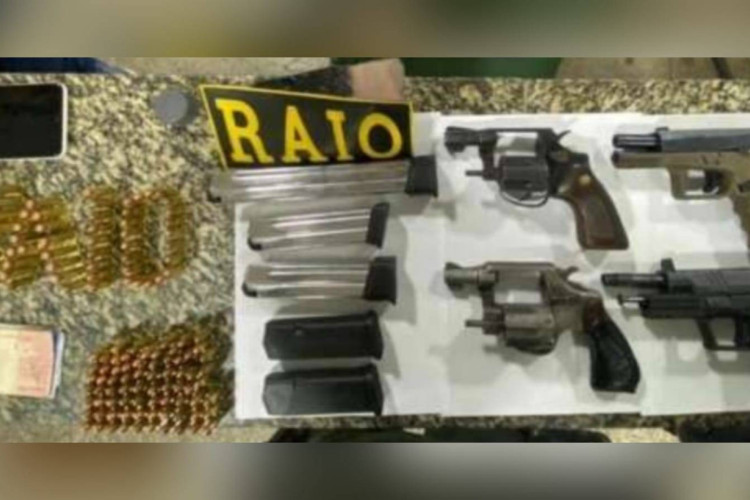 Com o grupo, os policiais apreenderam duas pistolas calibre 9 mm, dois revólveres.38, 105 munições 9 mm e 39 munições .38.