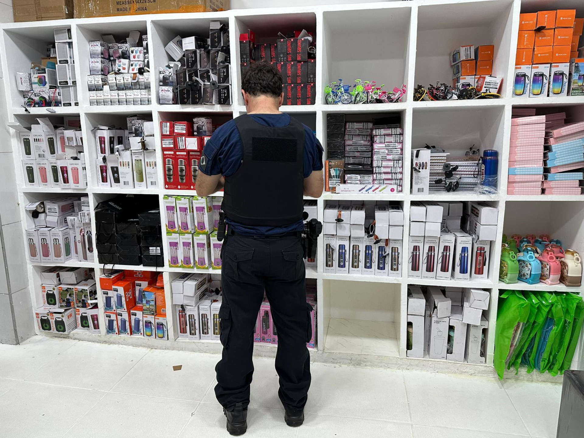 Durante a operação, foram apreendidos diversos tipos de mercadorias, incluindo celulares e smartphones, entre as marcas Realme, Xiaomi, Redmi e iPhones, além de videogames, calçados, roupas, bolsas, mochilas e brinquedos, aparelhos eletrônicos, como caixas de som e fones de ouvido, e demais acessórios para celular.