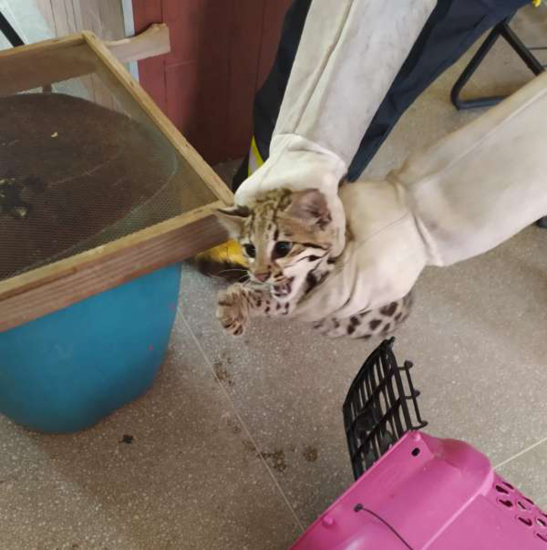 Filhote de gato-maracajá, espécie ameaçada de extinção, é encontrado em Solonópole