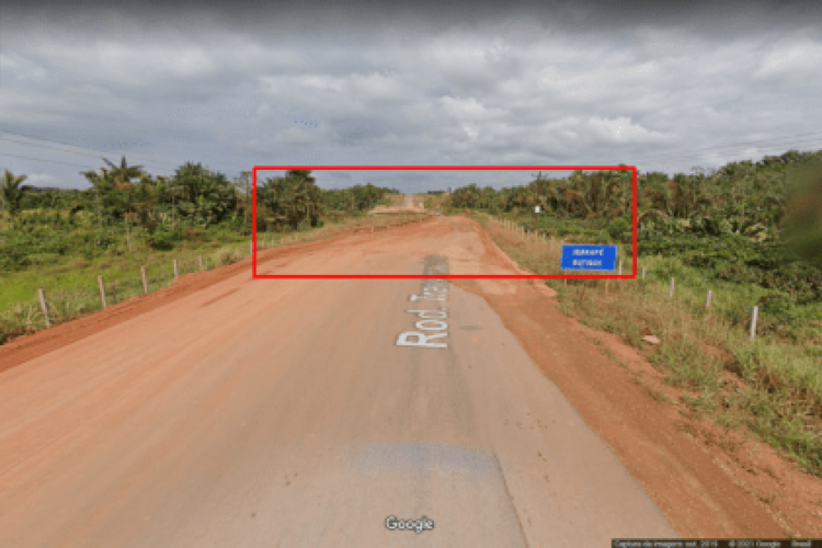 Em 2019, data da captura das imagens pela plataforma acessadas pelo Comprova, o trecho já tinha asfalto, porém a pavimentação estava deteriorada e a ponte ainda era de madeira. Próximo a ela, há um acúmulo de terra. O mapa mostra o caminho: