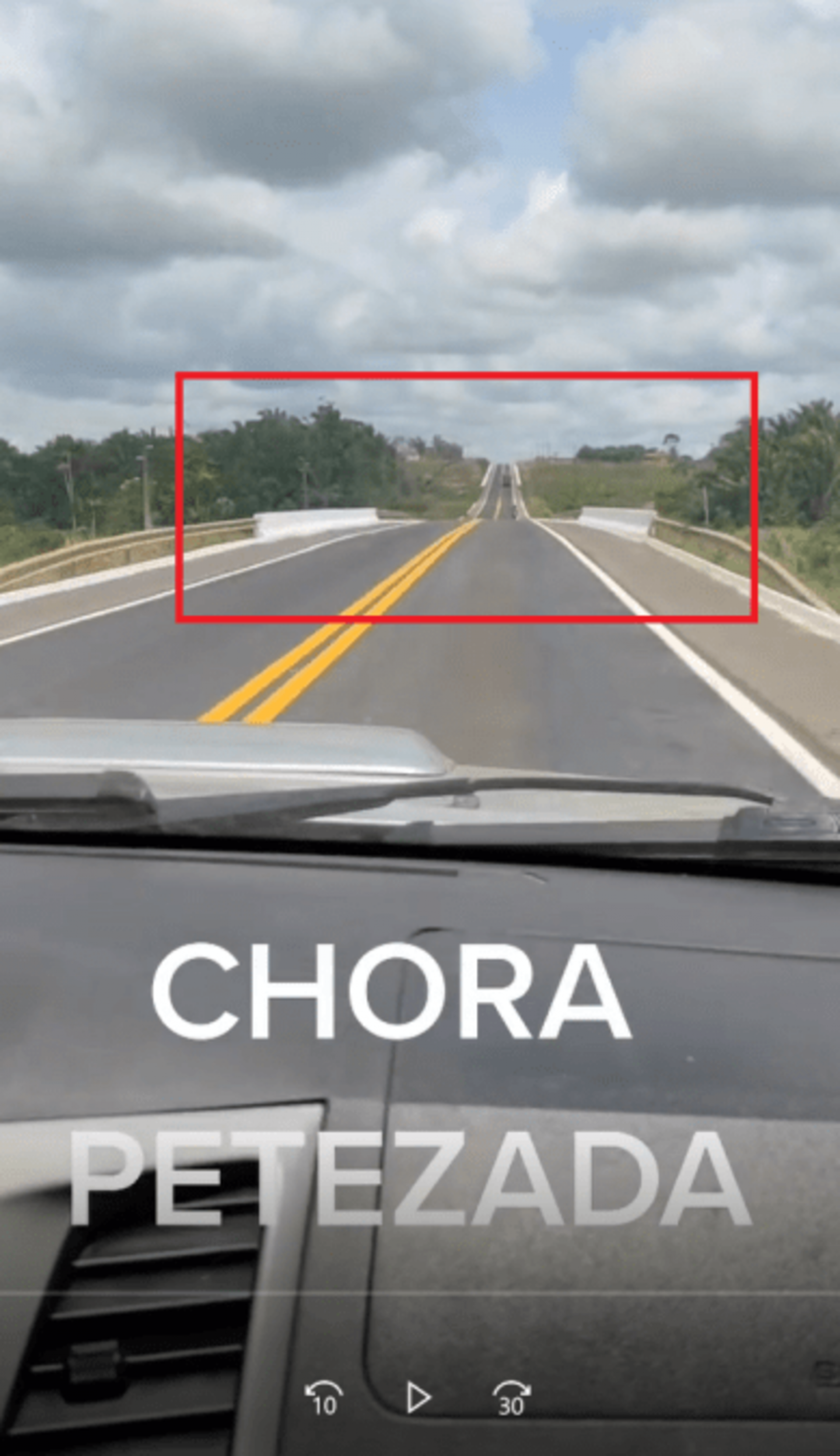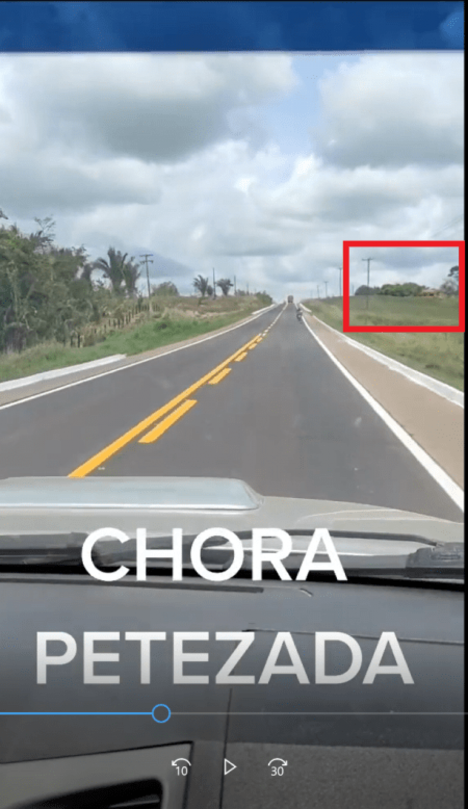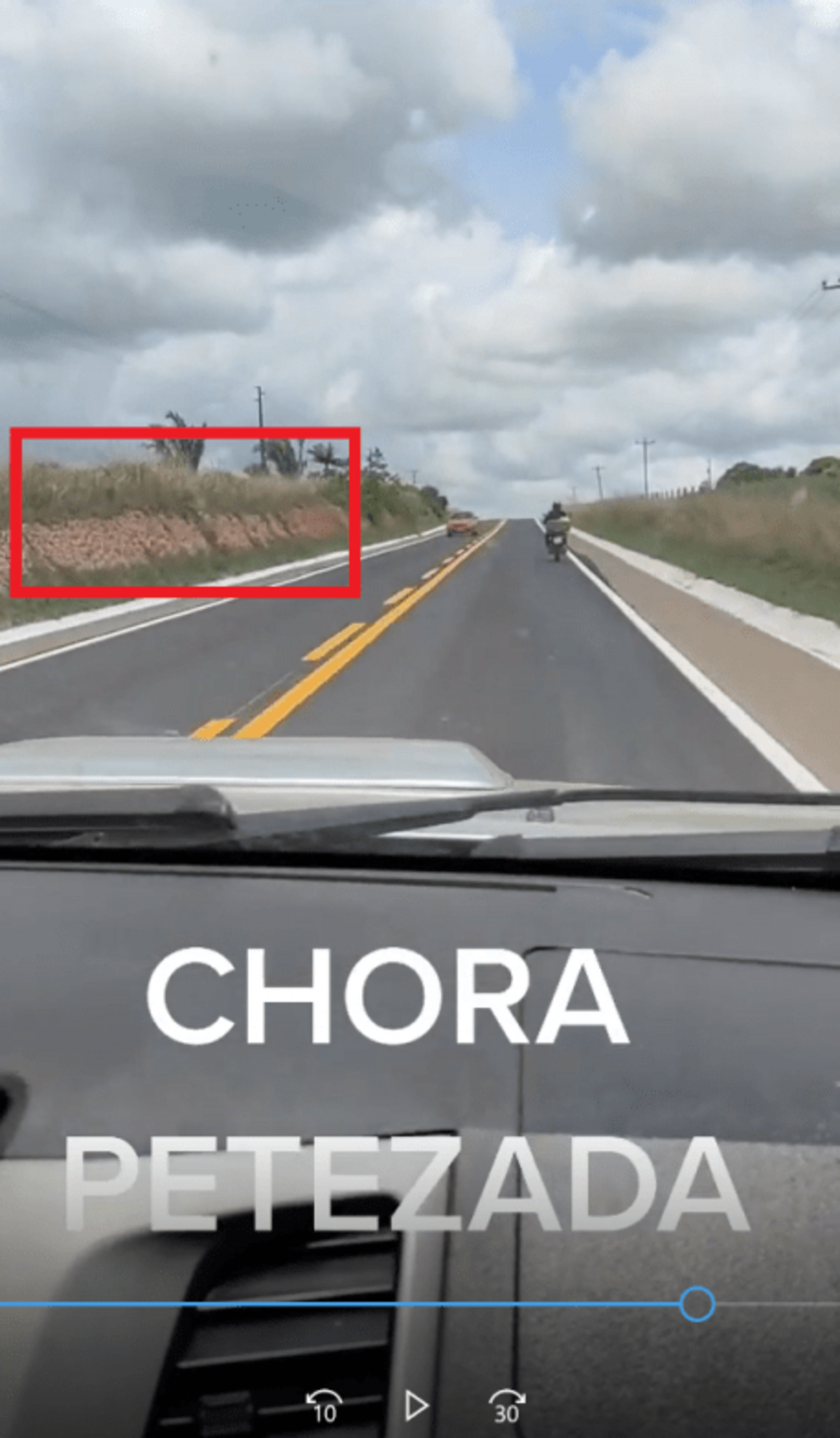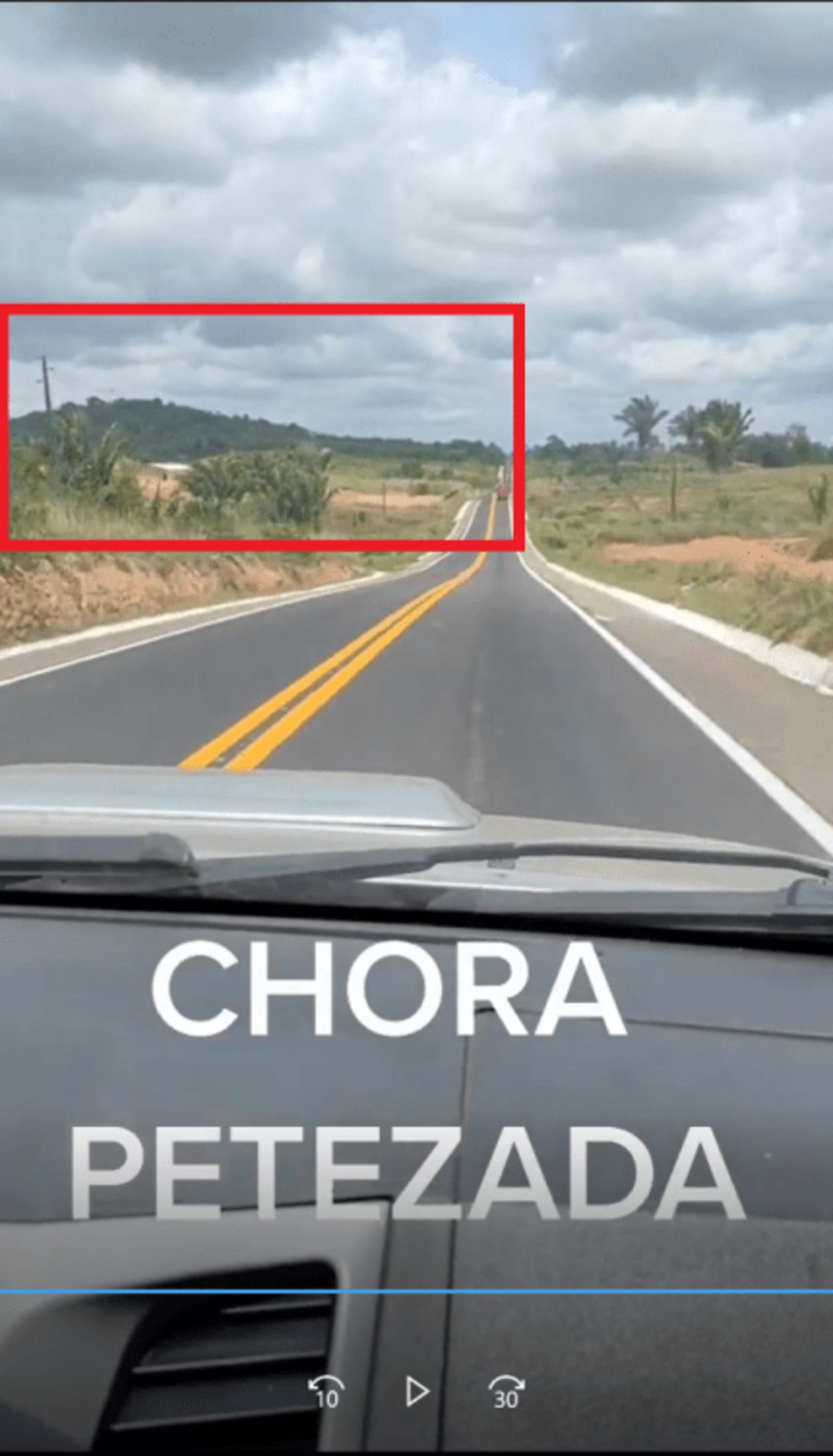 Por fim, ao final do vídeo, também é possível enxergar um morro ao lado esquerdo da rodovia: