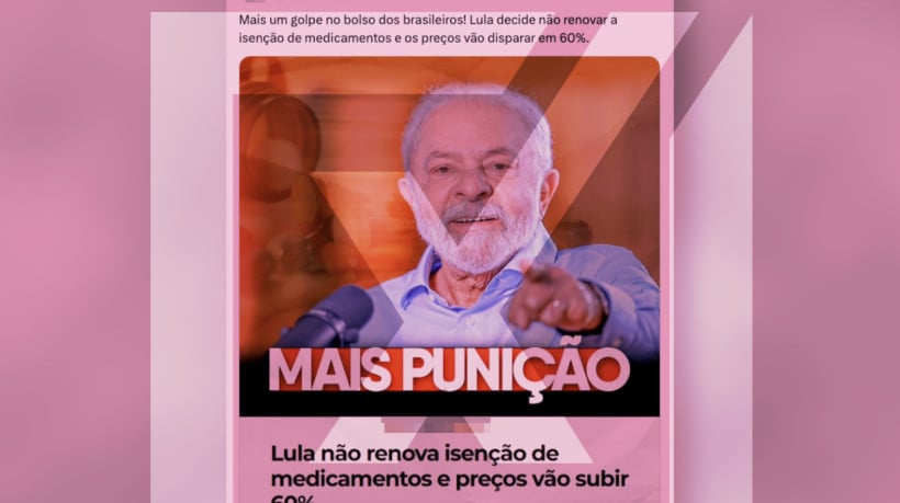 Conteúdo investigado: Imagem publicada por um deputado federal diz que o presidente Lula não renovou a isenção de impostos sobre medicamentos e que os preços vão subir 60%. O autor do post escreve: “Mais um golpe no bolso dos brasileiros!”.