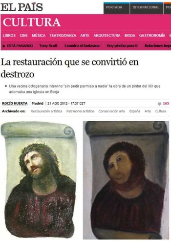 Idosa distorce obra histórica após tentar restaurá-la