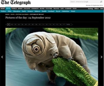 Um tardigrado, mais conhecido como urso d’água, foi registrado em uma microfotografia divulgada pelo jornal Daily Telegraph. O animal é considerado um dos mais resistentes da Terra.
