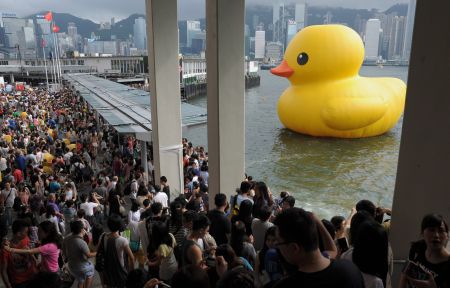 O porto de Victoria, em Hong Kong, China, foi tomado por milhares de pessoas dispostas a ver pela última vez o famoso pato gigante inflável, no último domingo. O pato foi criado pelo artista holandês Florentijn Hofman.