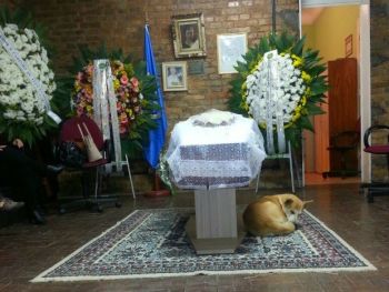 Milke não desgrudou dela até o fim da cerimônia. Com um ar triste o cachorro, que foi adotado pela idosa, ficou deitado o tempo todo ao lado do caixão.