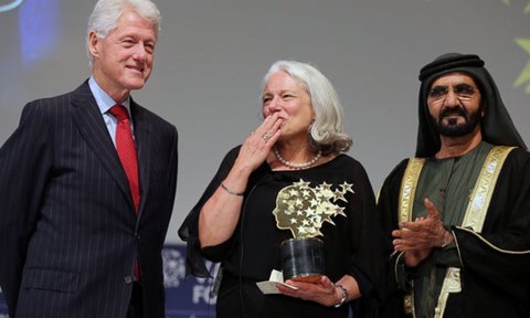 O bilionário Bill Gates participou da premiação por videoconferência e parabenizou a professora. O ex-presidente dos Estados Unidos Bill Clinton também esteve presente no evento.