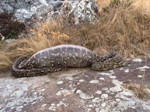 Uma enorme cobra píton morreu após devorar um porco-espinho em uma reserva na província de KwaZulu-Natal, na África do Sul.