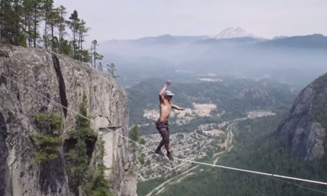 Na cidade de Squamish, no Canadá, o britânico Spencer Seabrooke quebrou o recorde mundial de slackline ao caminhar sobre uma fita a uma altura de 290 metros do chão. Como se não bastasse a distância para o chão, o inglês realizou toda a travessia sem os sem equipamentos de proteção.