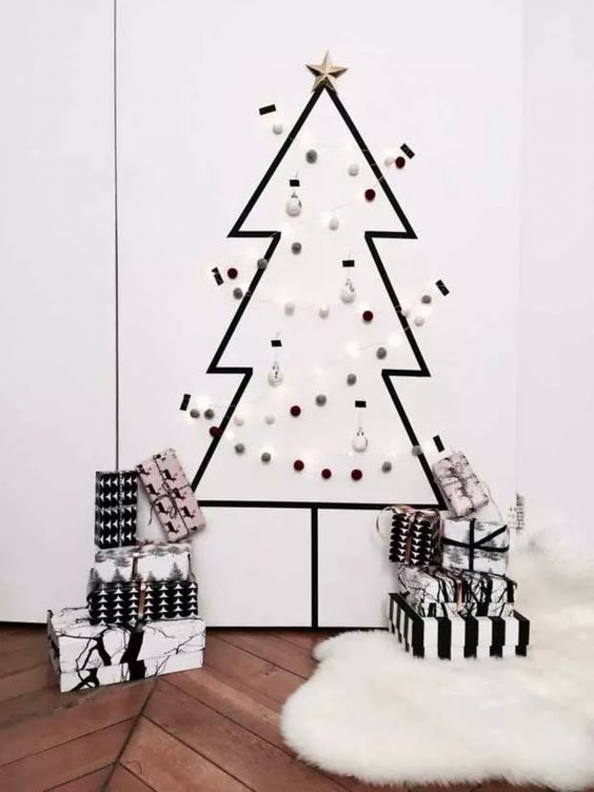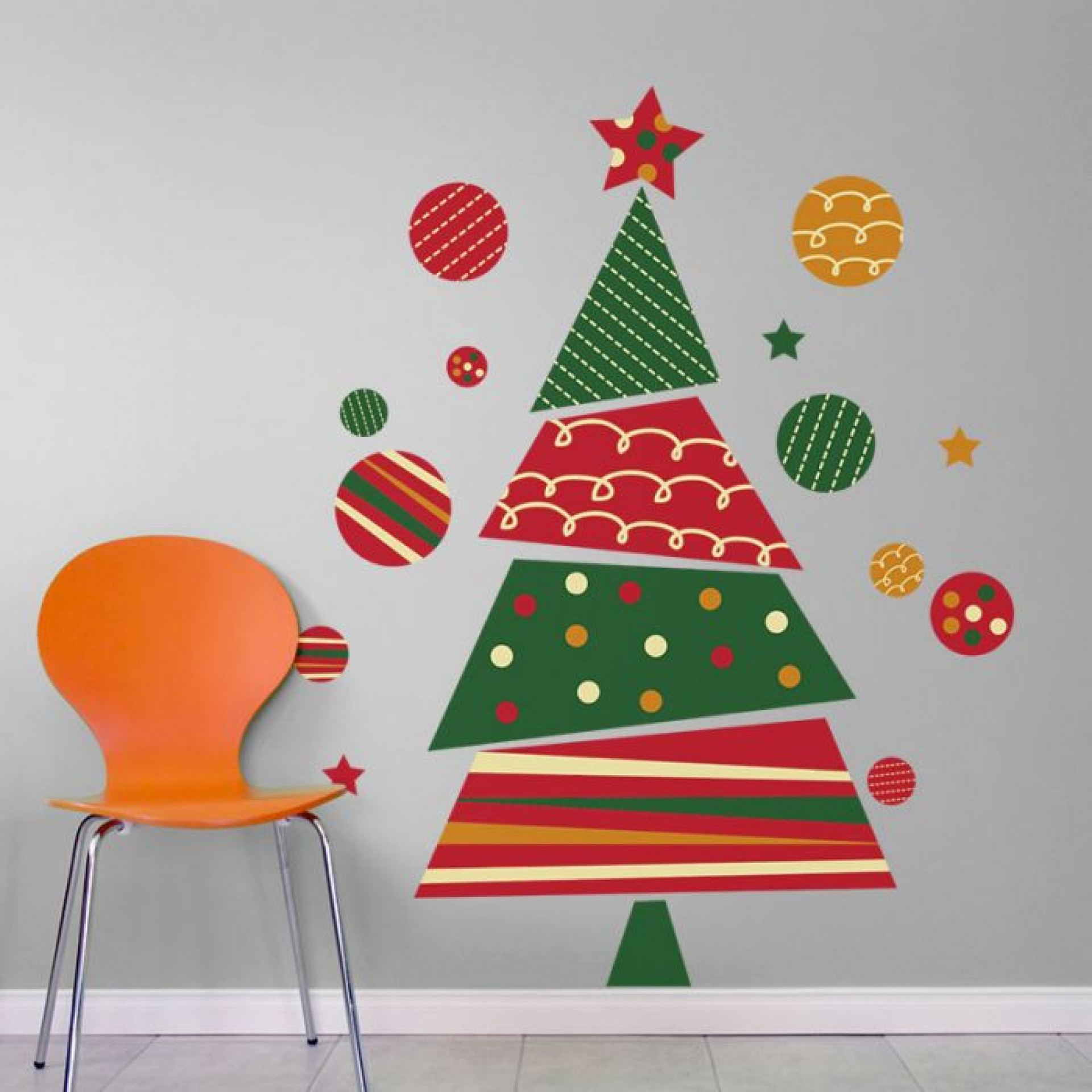 As árvores adesivadas são bem práticas e podem variar de acordo com o seu gosto, podendo ser mais clássicas ou mais coloridas.