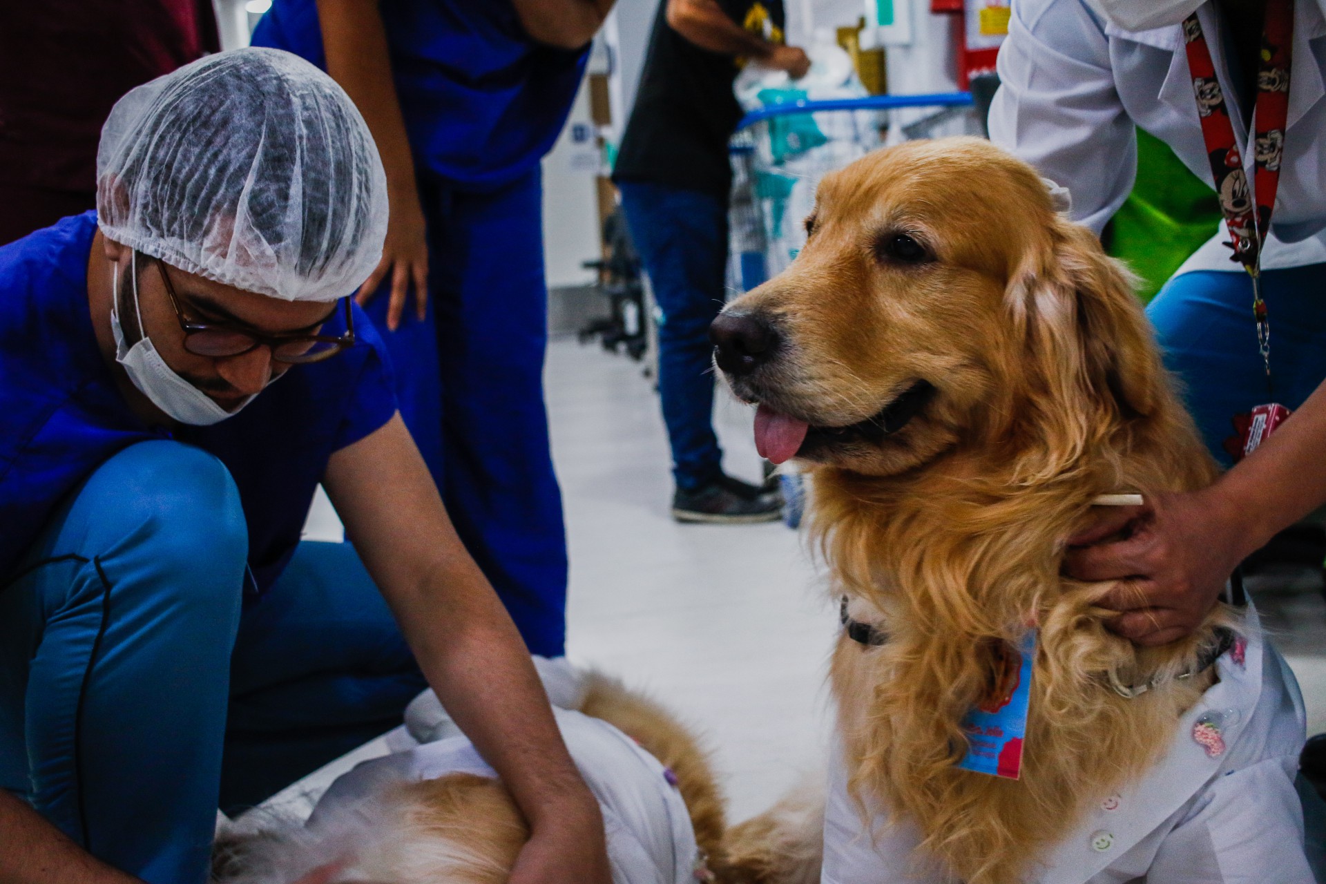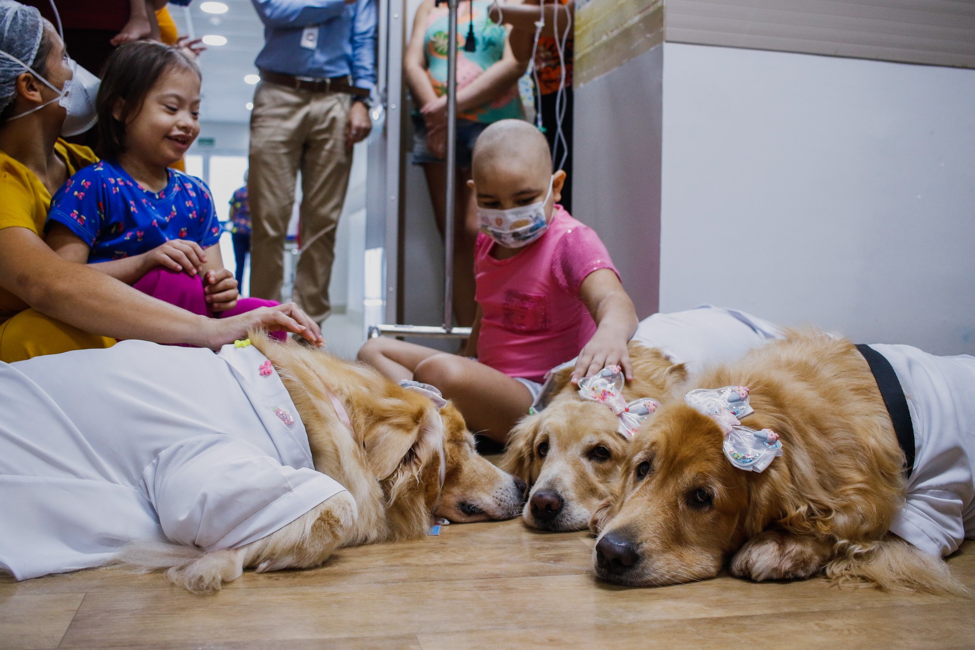Conhecido pelo "Sexteto 4 patas", cachorros da raça Golden visitam hospitais de Fortaleza para alegrar profissionais da saúde crianças internadas