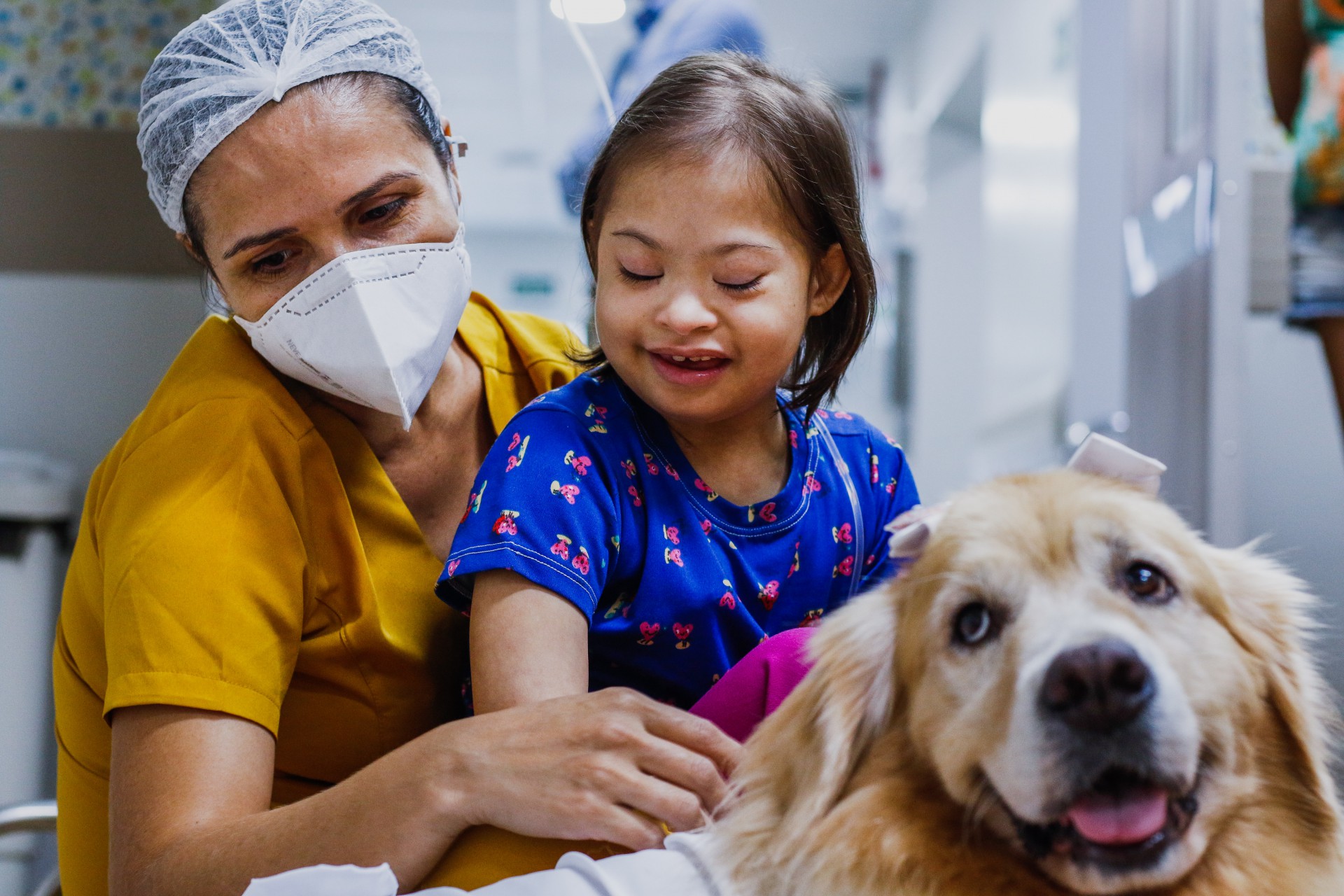 Cachorros "enfermeiros" fazem visita a hospital pediátrico de Fortaleza