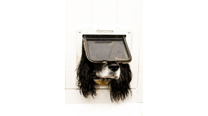 Foto de cachorro entalado em portinha criada para gatos vence concurso e é eleita como foto de pet mais engraçada do mundo em 2024. Confira registros: