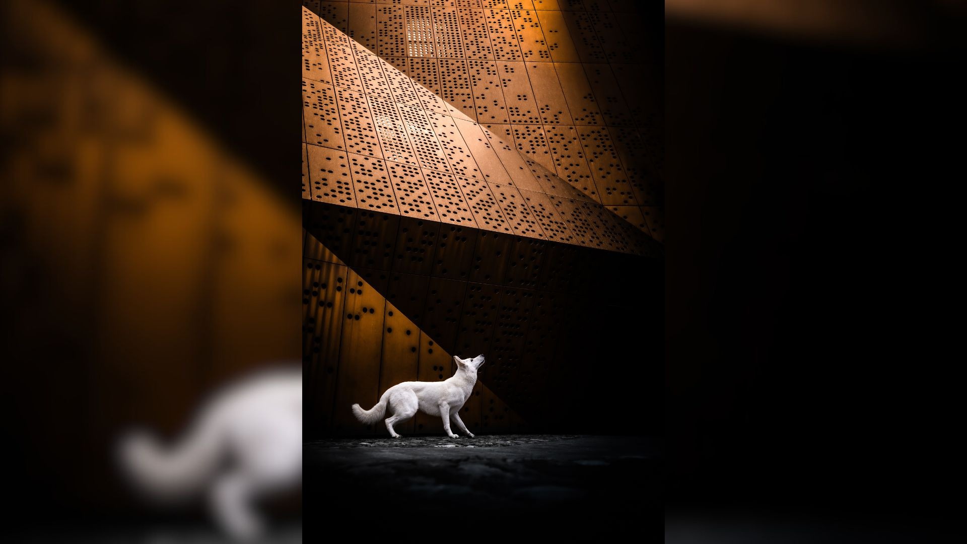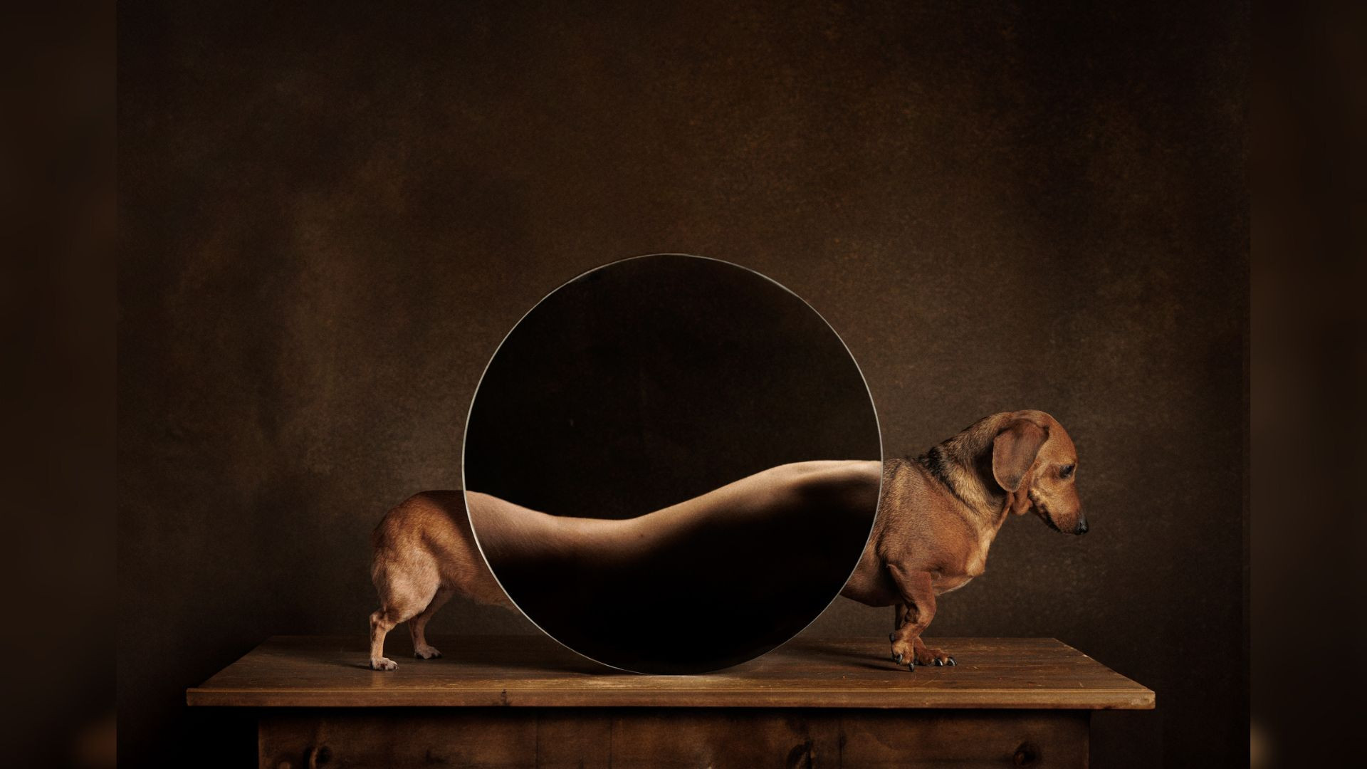 Sua imagem premiada, “Metamorfose Canina”, triunfou na categoria Estúdio. Na composição, dois cães ficam de cada lado de um espelho, que reflete as costas de uma mulher, criando uma ilusão visual que alonga os corpos dos cães.