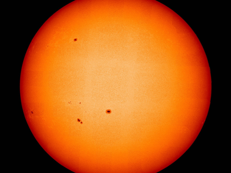 As manchas solares são os elementos que mais se destacam no magnetograma. Essas regiões, significativamente mais frias do que o restante da fotosfera, estão associadas a intensas linhas de campo magnético, evidenciadas pelo brilho complexo do plasma.