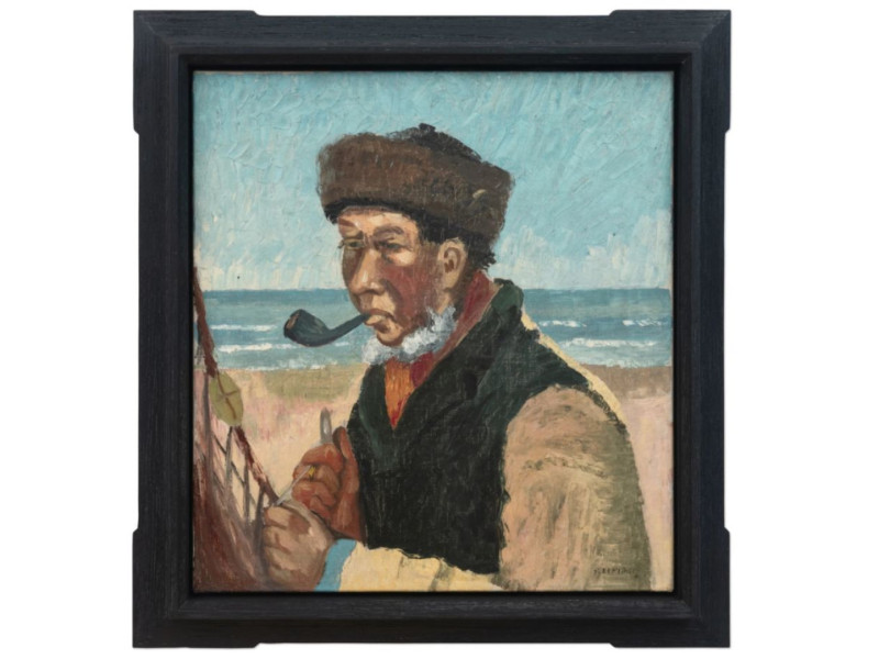 Caso essa pintura seja realmente de Van Gogh, ela seria a 151ª da série. A obra retrata um pescador usando um chapéu redondo, fumando um cachimbo e trabalhando em uma rede de pesca, tendo ao fundo o mar e a areia.