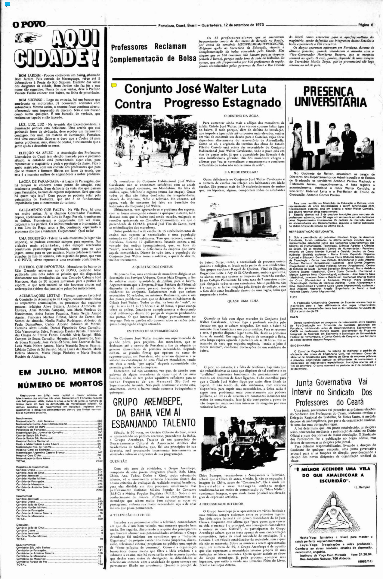 “Aqui não existe policiamento”, dizia Edvar Teixeira, administrador do conjunto, em reportagem do O POVO em 1976. Moradores relatavam arrombamentos frequentes e riscos constantes para crianças e idosos.