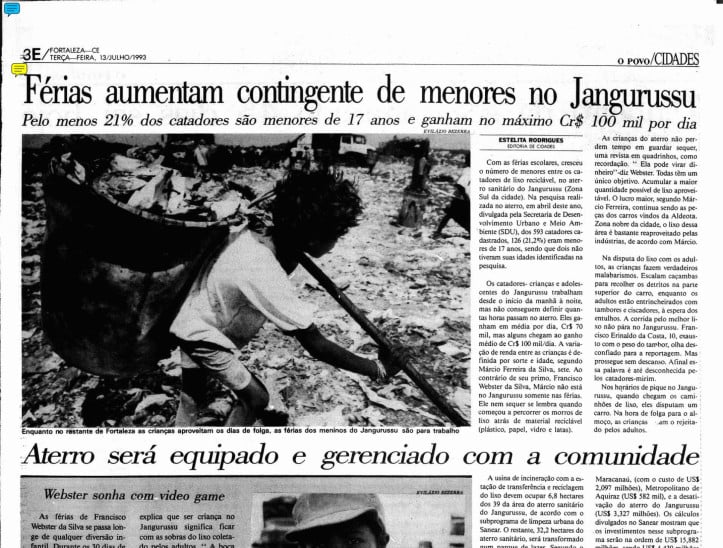 "Na disputa do lixo com os adultos, as crianças fazem verdadeiros malabarismos. Escalam caçambas para recolher os detritos na pane superior do carro, enquanto os adultos estão estrincheirados com tambores e ciscadores, à espera dos entulhos", descreve a reportagem sobre como era a briga pelo "melhor lixo".