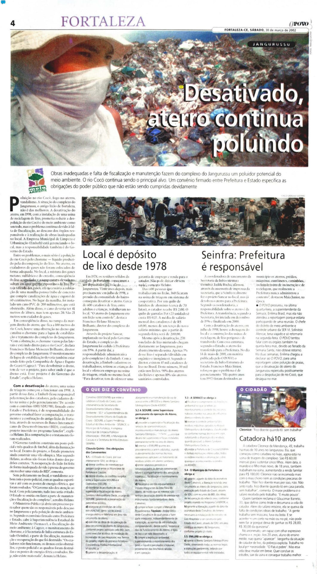Quatro anos depois, o termo de transferência e recebimento de equipamentos e para as obras para a desativação do lixão do Jangurussu foi assinado pelo governador Tasso Jereissati e pelo prefeito Antônio Cambraia.