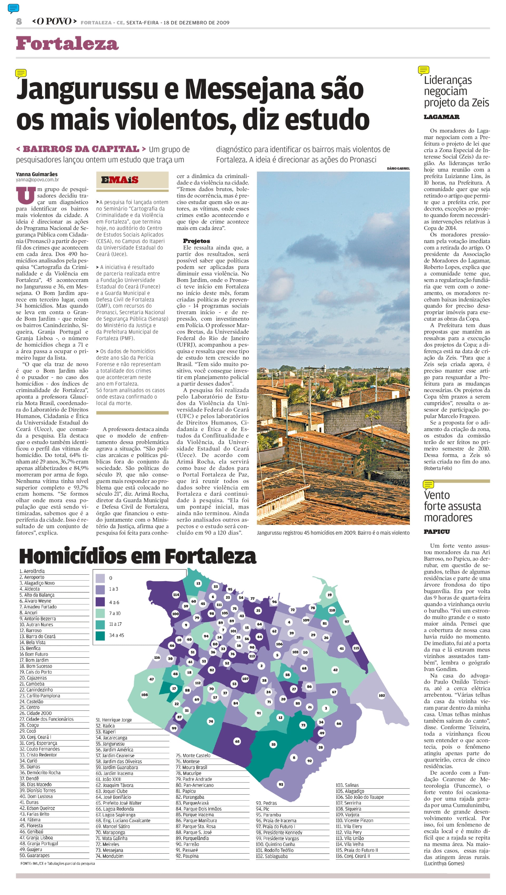 O POVO noticiou, no mesmo ano, que o Jangurussu e a Messejana eram os bairros mais violentos da Capital. Dos 490 homicídios registrados pela pesquisa, 45 aconteceram no Jangurussu.
